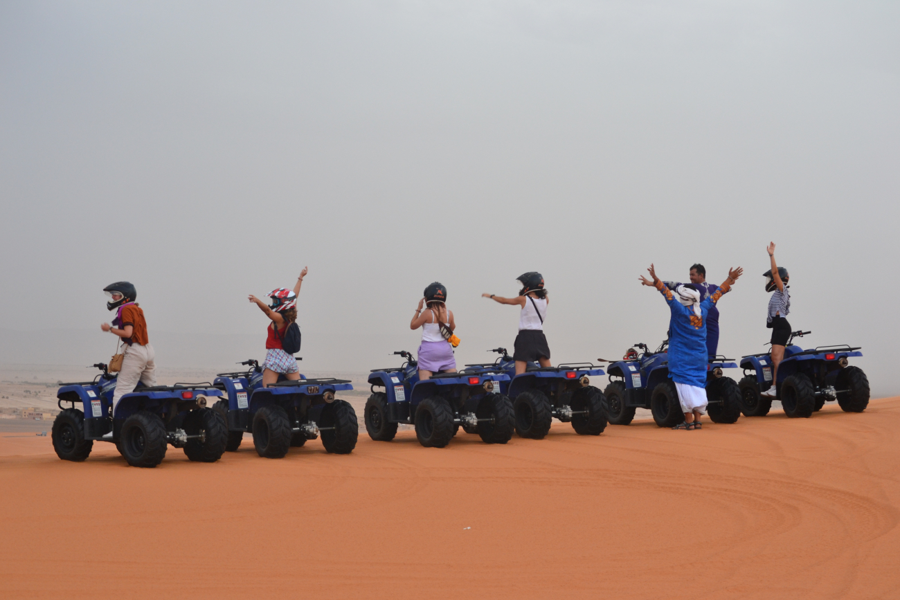 A nuestra llegada al campamento en el desierto, seremos recibidos con un tradicional té de bienvenida. Tras un breve momento de relajación y tiempo para acomodarnos en nuestras jaimas, emprenderemos una emocionante excursión en dromedarios para ascender a la duna más alta, justo a tiempo para capturar el magnífico atardecer. Desde esta privilegiada altura, no solo disfrutaremos de vistas panorámicas sino que también tendremos la oportunidad de practicar sandboarding. Será el momento perfecto para capturar fotografías únicas de la puesta del sol sobre el vasto mar de arena.